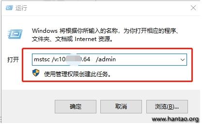 2.输入mstsc /v:服务器IP /admin 命令登陆远程【注意mstsc后有空格,IP后有空格】如下图: