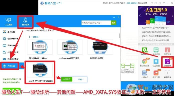 第二步,打开驱动人生7——驱动诊所——其他问题——AMD_XATA.SYS验证签名失败——立即修复——搞定。