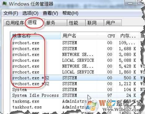1、CTRL+DEL+ALT,打开任务管理器,点击“进程”选项卡,你会发现你的电脑里有很多的svchost.exe程序,到底电脑有没有中毒
