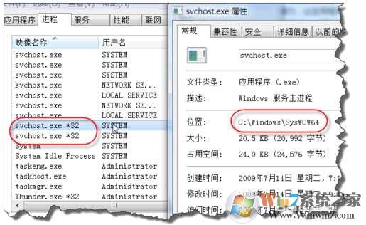 5、有的svchost.exe*32进程你会发现在C:\Windows\SysWOW64,其实SysWow64文件夹,是64位Windows,用来存放32位Windows系统文件的地方。大家也可以放心。