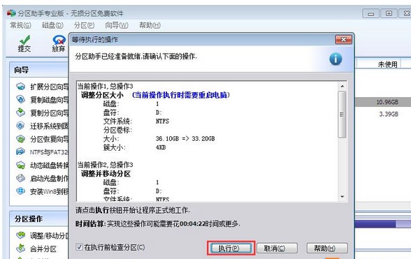 5、出现执行窗口后,点击“执行”按钮,接下来可能会有D盘被占用的提示,我们点击”重试“;
