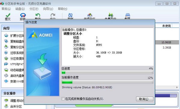 6、然后分区助手就自动帮助你分配空间了,我们需要的就是整一款咖啡,翘着二郎腿,哼几个小曲慢慢等待。