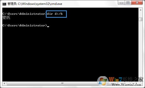 4、输入“dir d:/b”则是查看d盘未隐藏文件和文件夹的名称,如图所示: