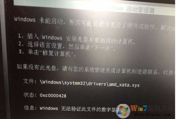 以上就是amd_xata.sys导致win7系统无法启动的解决方法,对于其他sys文件导致的win7无法启动情况也可以类似解决。
