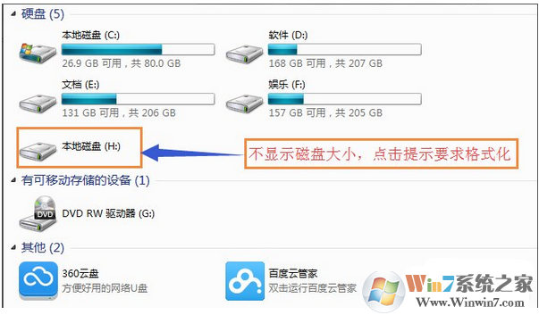 2、打开“我的电脑”查看,也不显示磁盘容量大小。
