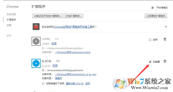 6、把其中的一个加载的插件勾选上,这样这个插件就启用了。