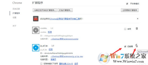 8、如果想取消插件就把勾选去掉,如果想删除,可以点击那个垃圾桶的按钮进行删除。