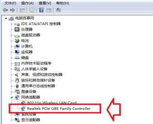 3、在设备管理器中,我们查看网络适配器项,如果驱动安装正常展开后我们可以看到我们的网卡型号,