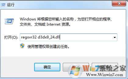 二、然后打开“开始-运行-输入regsvr32 d3dx9_24.dll”,回车即可解决错误提示。