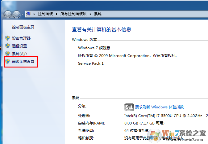 2、进入安全模式后右键点击计算机选择属性,在弹出的页面中点击高级系统设置;