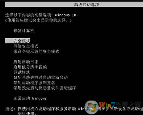 1、在重启的时候快速一直不间断的按F8尝试进入安全模式,如果进入不了就多尝试几遍