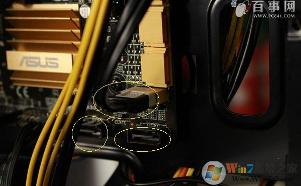电源线是从安装到机箱内的电源上分出来的,数据线直接连在主板的SATA 3 接口上,现在,把它们统统都插好,如下图。