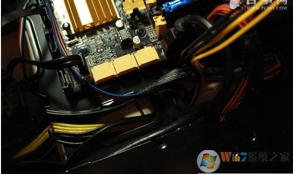 线路基本连接差不多了,但电源上没用上的接线头还很多,所以一般都这么梳理一下放在机箱的角落里。如果想整齐的处理,就用卡子捆扎一下完事了,如下图所示。