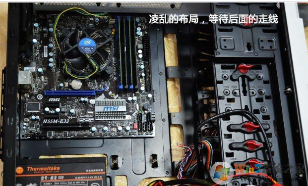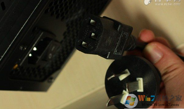 最后就是将电源线插入电脑机箱供电,然后把插入另外一端接入交流电插座。接下来,准备开机测试了,如下图!