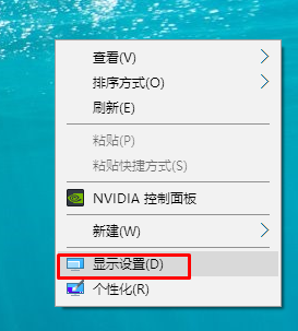 1、桌面空白处使用右键选择显示设置。(如果是Win7 ,右键——》屏幕分辨率即可)