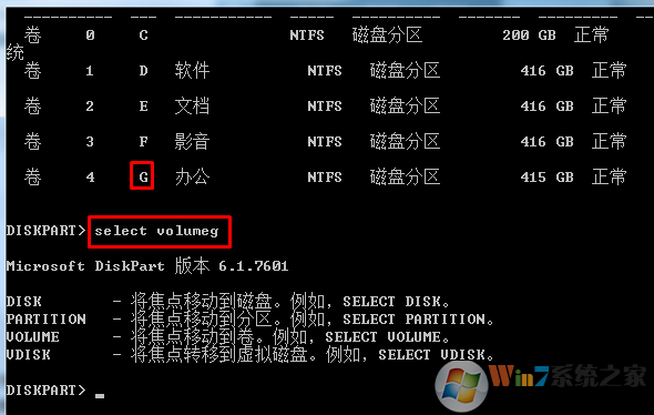 7、remove letter=x 删除指定卷驱动号 (图中G盘为要删除盘符的EFI分区)