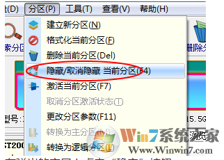 选中该分区,然后点击“分区”菜单,并选择“隐藏/取消隐藏 当前分区”项。