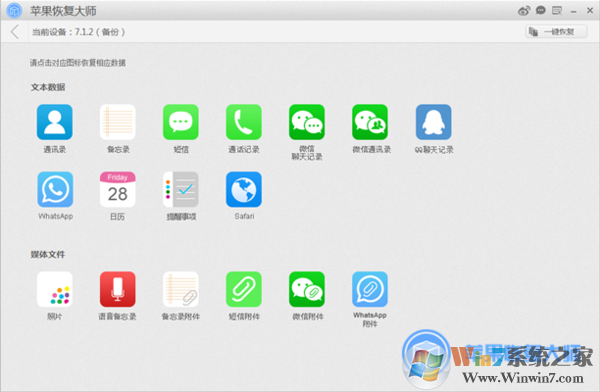 2、进入下一个界面后,你就可以单项查看iTunes备份中的17项数据,具体如下所示: