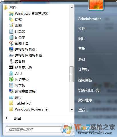 4、然后我们要以管理员身份运行CMD命令,Win7系统在,开始——所以程序——附件——命令提示符;(右键以管理员身份运行)