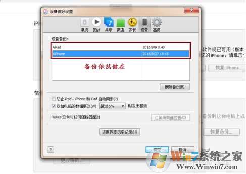 8、到这里iTunes备份目录的路径更改及转移就完成了,我们再打开Win7系统 iTunes查看备份,是不是备份还在呢?说明我们的操作起作用了。