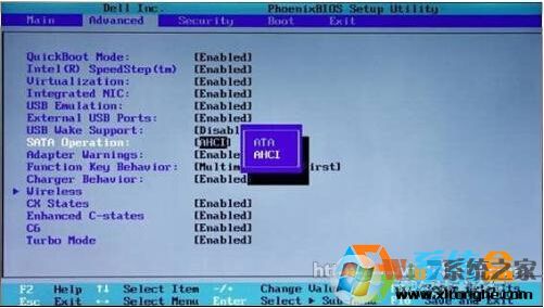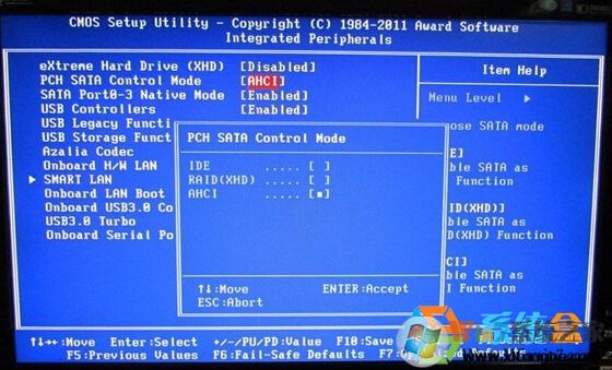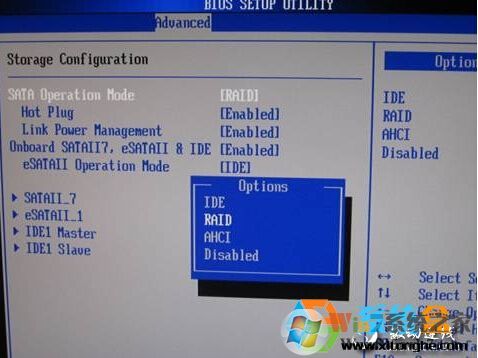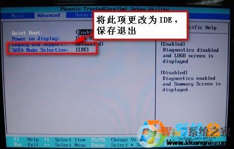 2、在BIOS设置中找到类似SATA Mode 的选项,将选项更改为IDE(有些电脑需设置成SATA),由于每个机子BIOS设置界面不一样,名称也有些不同,下面小编收集了一些BIOS的设置界面供大家参考: