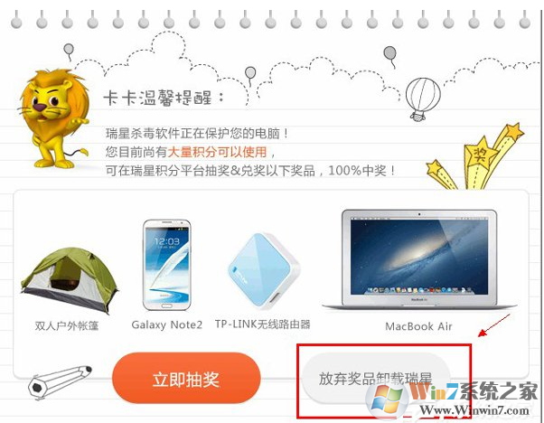 2、开始卸载后它会用抽奖系统来吸引你,我们不用管,这个没有买彩票中奖的概率就不用去想了。