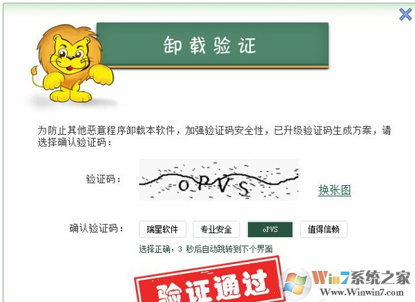 3、输入验证码,瑞星现在还算人性了点,以前是输入汉字的,现在只需要选择就行了。