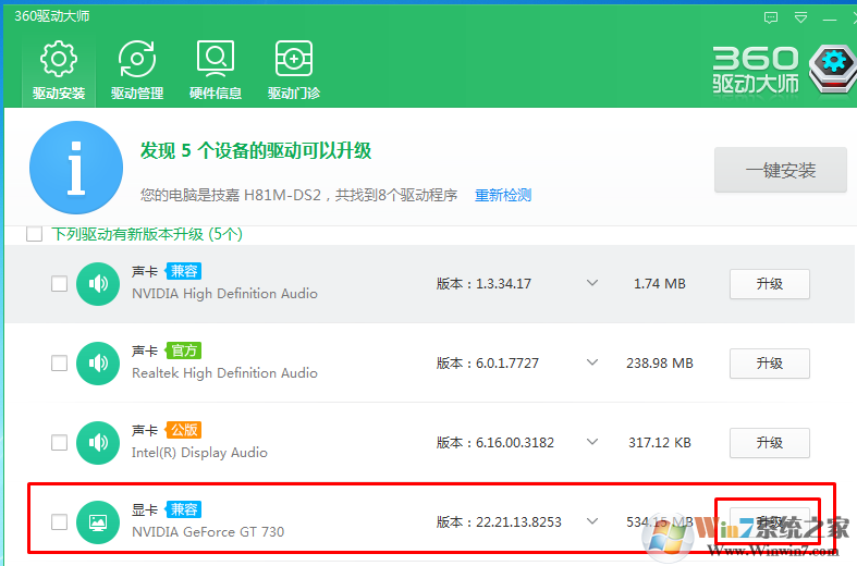 2、如正常的情况下我们尝试更新一下显卡的驱动程序,如若不知道如何更显显卡驱动的,可以下载一个360驱动大师,一键傻瓜式安装即可