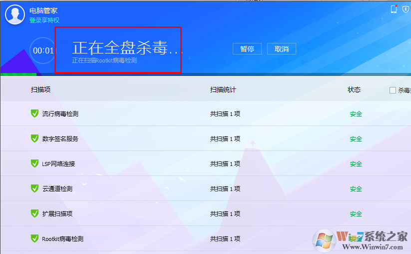 4、进行一次全盘病毒查杀