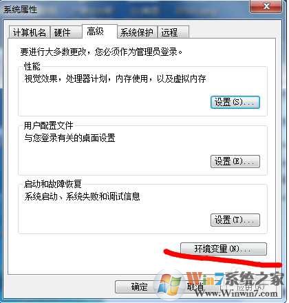 2、然后在高级选项卡下,点击 下方的“环境变量”按钮
