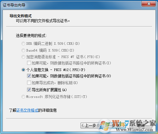 然后选择导出私钥,并且键入证书保护密码(此密码在证书导入时需要)。