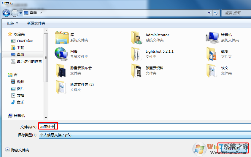 6、点击浏览选择存储路径,然后将文件名修改位加密证书