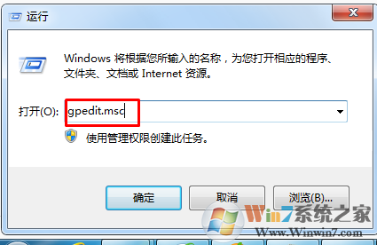 1、使用组合键win+r打开运行,在窗口输入“gpedit.msc”。