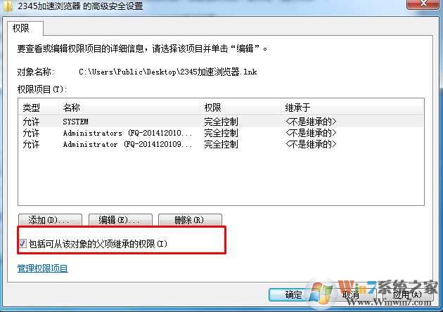 4、勾选“包括可从该对象的父项继承的权限”选项,确定!