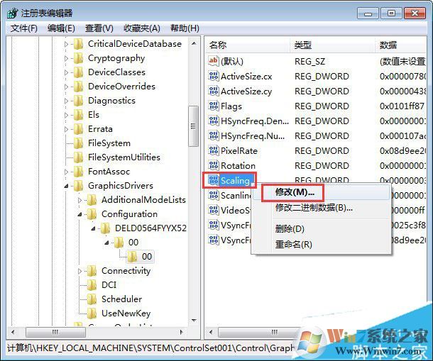 4、查找完毕后可以在右边找到scaling,右击scaling,选择“修改”