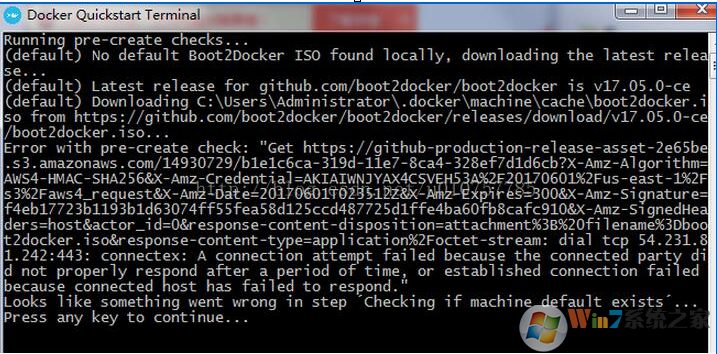 这就是启动时如果检测到没有 Boot2Docker,就会去下载,这个下载过程下载失败,导致启动失败