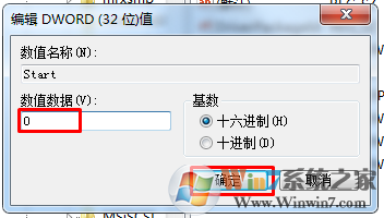 三、接着在弹出来的窗口中,将默认的数值数据修改为0,再点击“确定”按钮,保存后即可,接着你再重新启动一下电脑。
