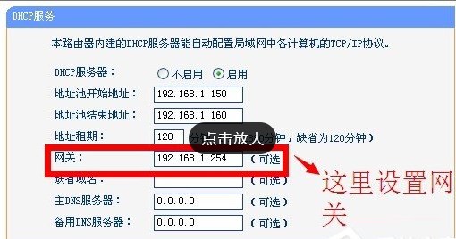 4、网关:填写路由器LAN口IP地址,缺省为192.168.1.1;