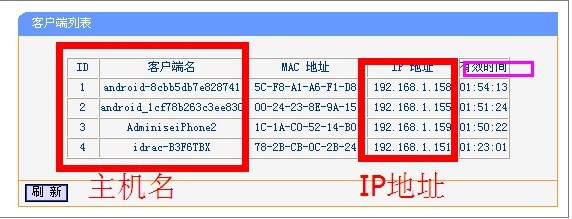 2、上图中显示了通过DHCP服务器获得IP地址主机的主机名、MAC地址、获得的IP地址和有效时间。