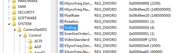 4、在注册表编辑器内选择查找,输入Scaling,在右框内找到Scaling,右Scaling选择修改,将数值改为(3)即可,默认应该是(4)。