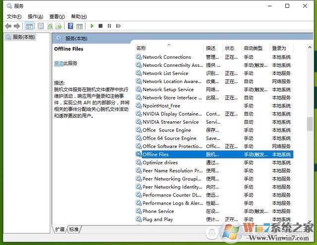 2、在服务中找到Offline Files,双击打开