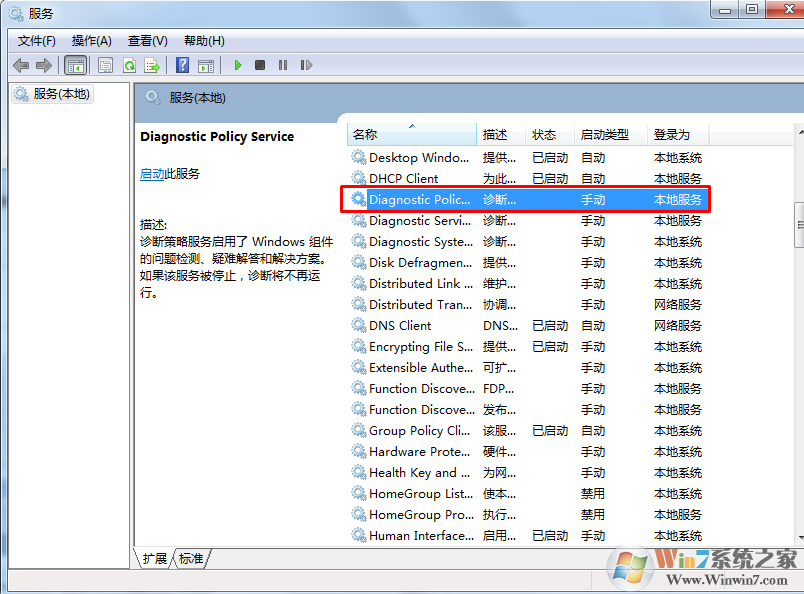 2、在服务中找到Diagnostic Policy Service服务,