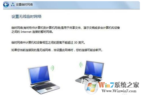 然后在跳出的窗口里面选择“设置无线临时(计算机到计算机)网络”,