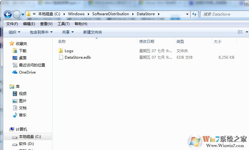 5、删除DataStore 文件夹下的所有内容即可;最后再重新开启“WindowsUpdate”服务。