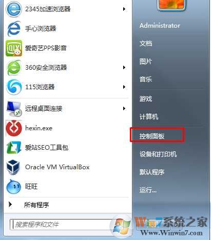 1、从开始菜单打开-控制面板;