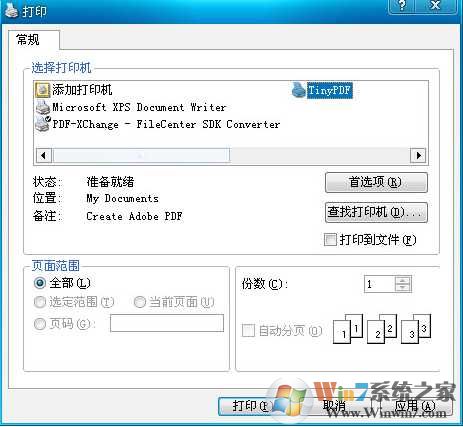2、点击“打印”后,弹出选择打印机,选择“TinyPDF“。
