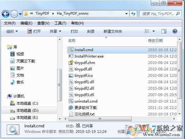 1、下载本站提供的TinyPDF软件压缩包,解压后双击“install.cmd”