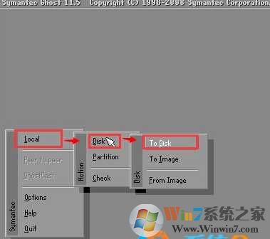 3、打开Ghost 后,使用键盘选择 Local ——》disk ——》Disk;