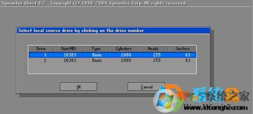 4、然后出现一个界面,让我们选择源磁盘,选择后确定新磁盘;(如果第一步没错的话,第一个是原来的磁盘,第二个则是新的硬盘)这里大家也可以根据硬盘的容量来判断哪个是新的哪个是旧的;