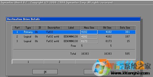 5、点击OK,如果没错的话,则会出现分区配置,分区数量则和原来硬盘一样,大小自动(如果两块硬盘不一样大的话);